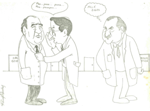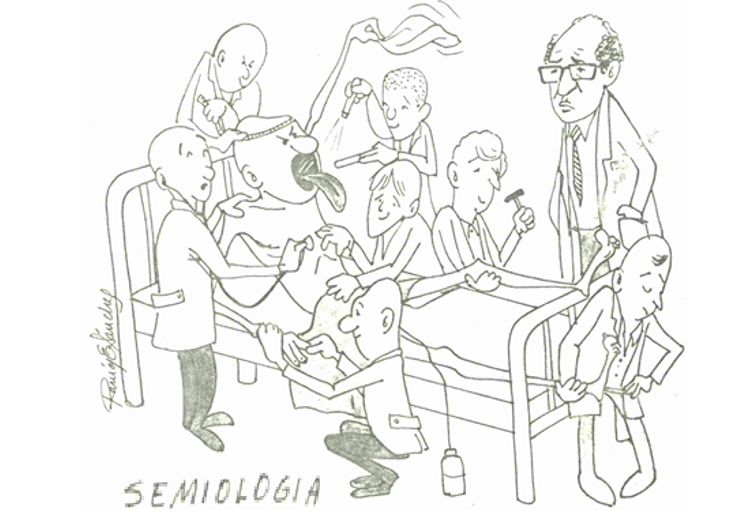En los inicios de la Facultad de Medicinan de la U. de Caldas, era costumbre entre los estudiantes hacer caricaturas de sus docentes, las cuales se publicaban en el periódico EL DEDO .